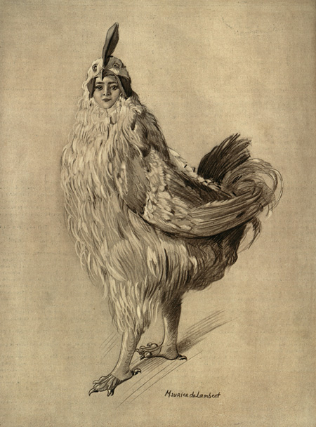 Костюмы к спектаклю «Шантеклер» по пьесе Эдмона Ростана, премьера которого состоялась в театре «Порт-Сен-Мартен» в Париже 7 февраля 1910 года. Спектаклю и костюмам был посвящён специальный выпуск журнала Le Theatre № 268 за 1910 год.