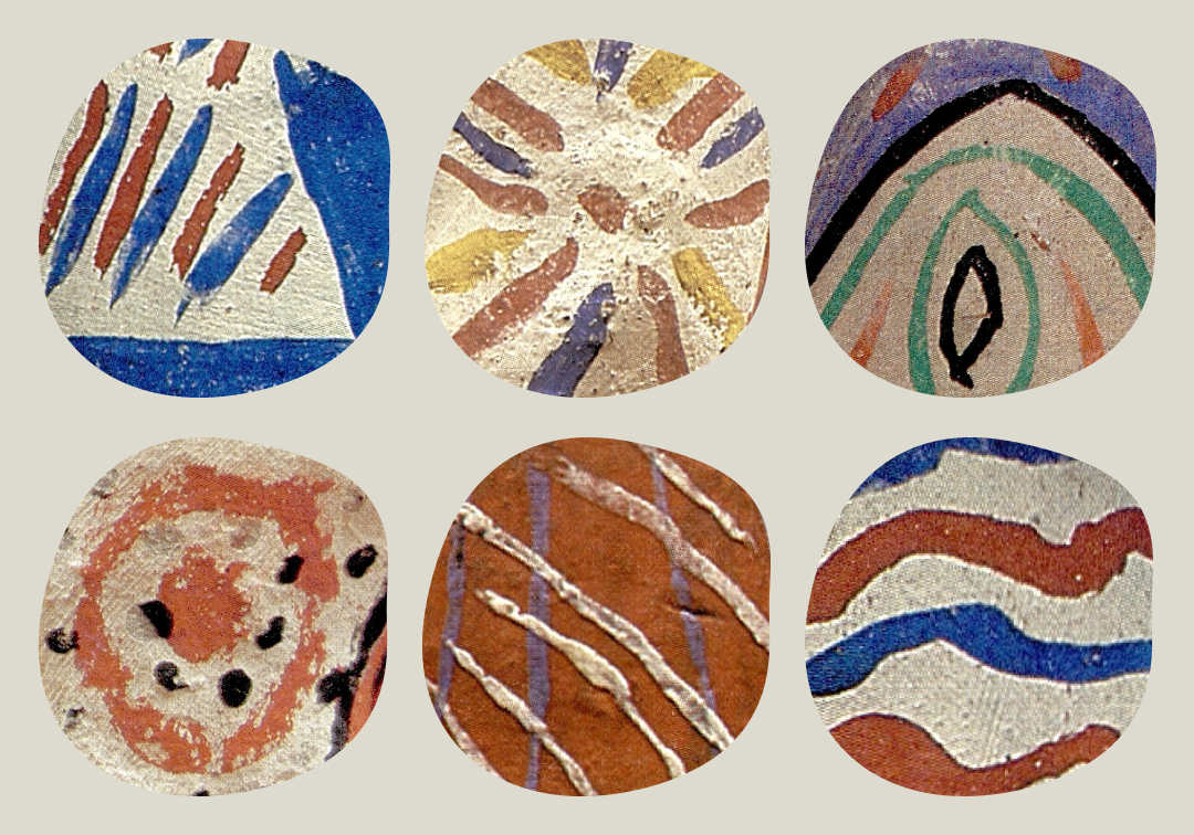 Первоначально игрушки, как и посуду, не разукрашивали, а погружали после печи в раствор овсяной или гороховой муки, в результате чего жидкость пригорала на изделиях причудливыми тёмными пятнами, разводами и узорами. В начале XX века декор усложняется, появляется цветная роспись с приглушённой цветовой гаммой и преобладанием розовых, зелёных, синих, жёлтых, оранжевых и красных красок. Применяются три приёма росписи — сплошная окраска отдельных частей, комбинация из пятен и сочетание прямых и волнистых линий и штрихов в виде своеобразного геометрического узора. В нём повторяются мотивы дерева, ветвей, листьев, красно-оранжевых кругов и крестов.