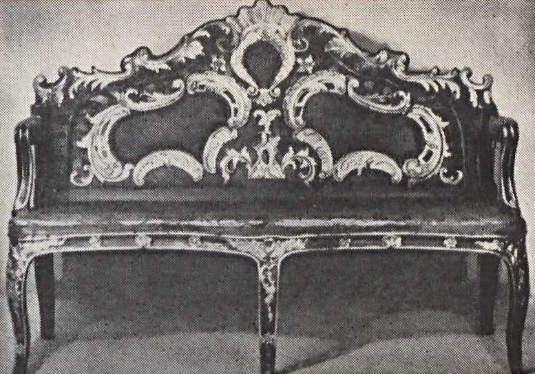 Резные золоченые стулья, кресла, канапе (диваны) и консоли выполняли и русские столяры: для дворцов — охтенские переведенцы и приписанные к Адмиралтейству, а также московские работники; для знати — обученные крепостные. Наследственное умение многих из них восходило к давним национальным традициям резьбы и золочения иконостасов XVII века. Ни имен мастеров, ни авторов рисунков до настоящего времени мы не знаем. Даже, как установлено Г. Г. Гриммом, «среди графического наследия Растрелли мы знаем относительно мало композиций на подобные темы» и, можно добавить, не знаем ни одной осуществленной.