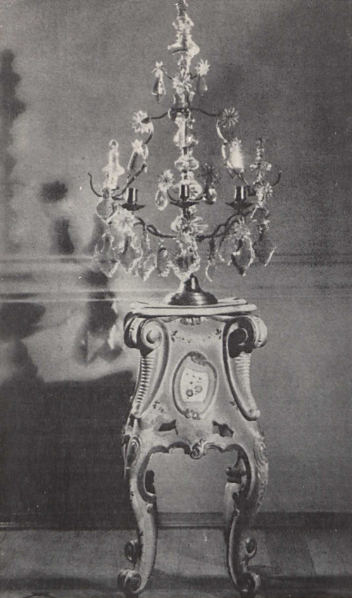 Видимо, к жилью более скромного убранства относились маленькие столики и шкафчики, явно не дворцового происхождения, окрашенные в светлые тона, с мелкой росписью цветочками и золотом, переплетенными с завитками рокайля. Подобные, несколько наивные по трактовке вещи, отличаются особым очарованием и привлекают непосредственностью и жизнерадостностью.