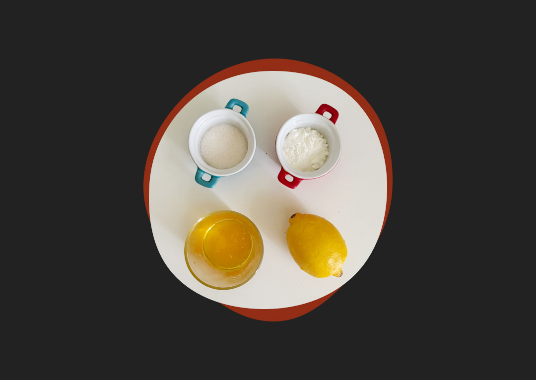 800–900 г воды, 75–80 г мёду, 2–3 чайные ложки сока лимона, 2–3 ст. ложки сахарного песку, 4–5 чайных ложек картофельного крахмала.