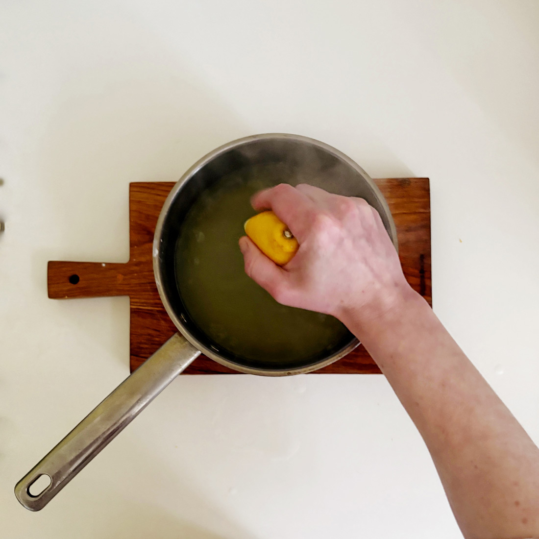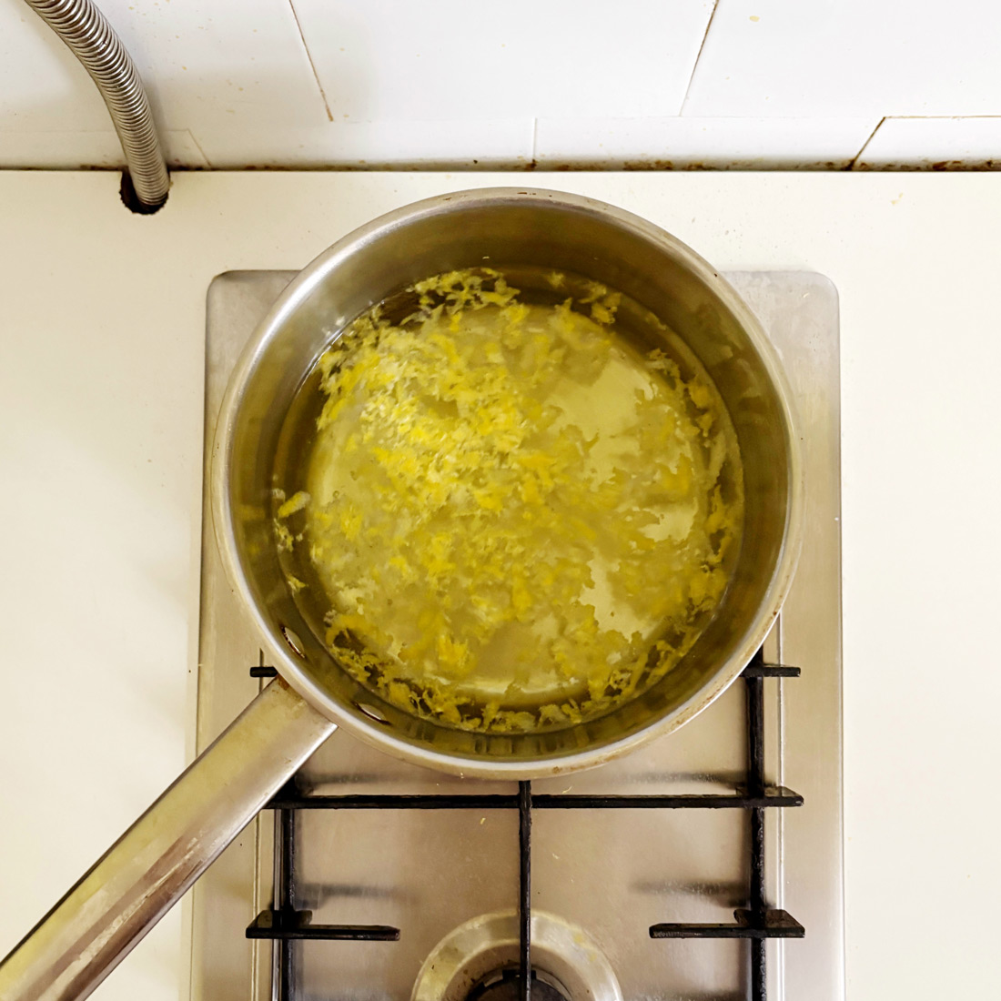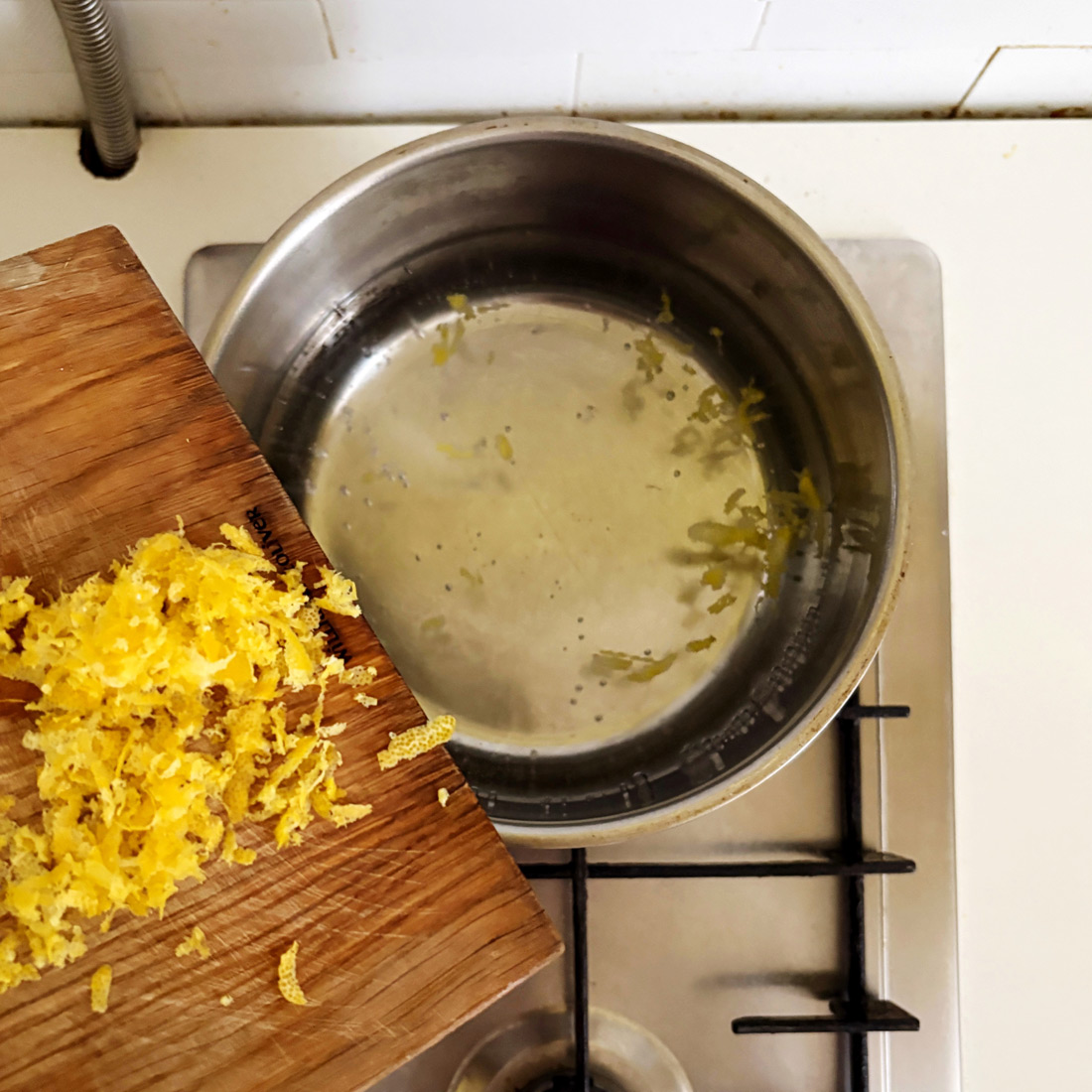 В горячую воду положить лимонную цедру и дать настояться 20–25 минут.