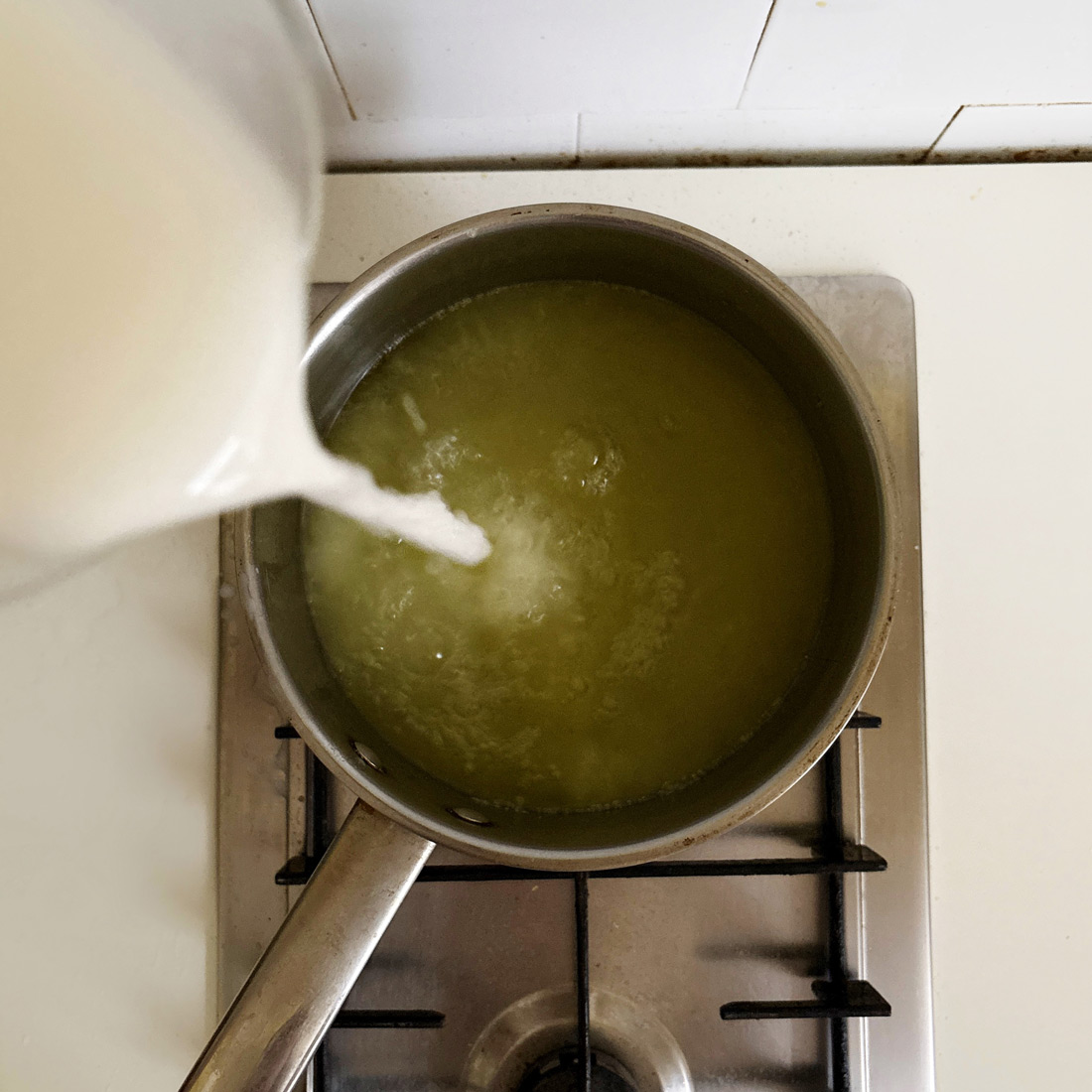 Смесь вновь довести до кипения, снять с огня, влить в неё отжатый из лимона сок, добавить мёд.