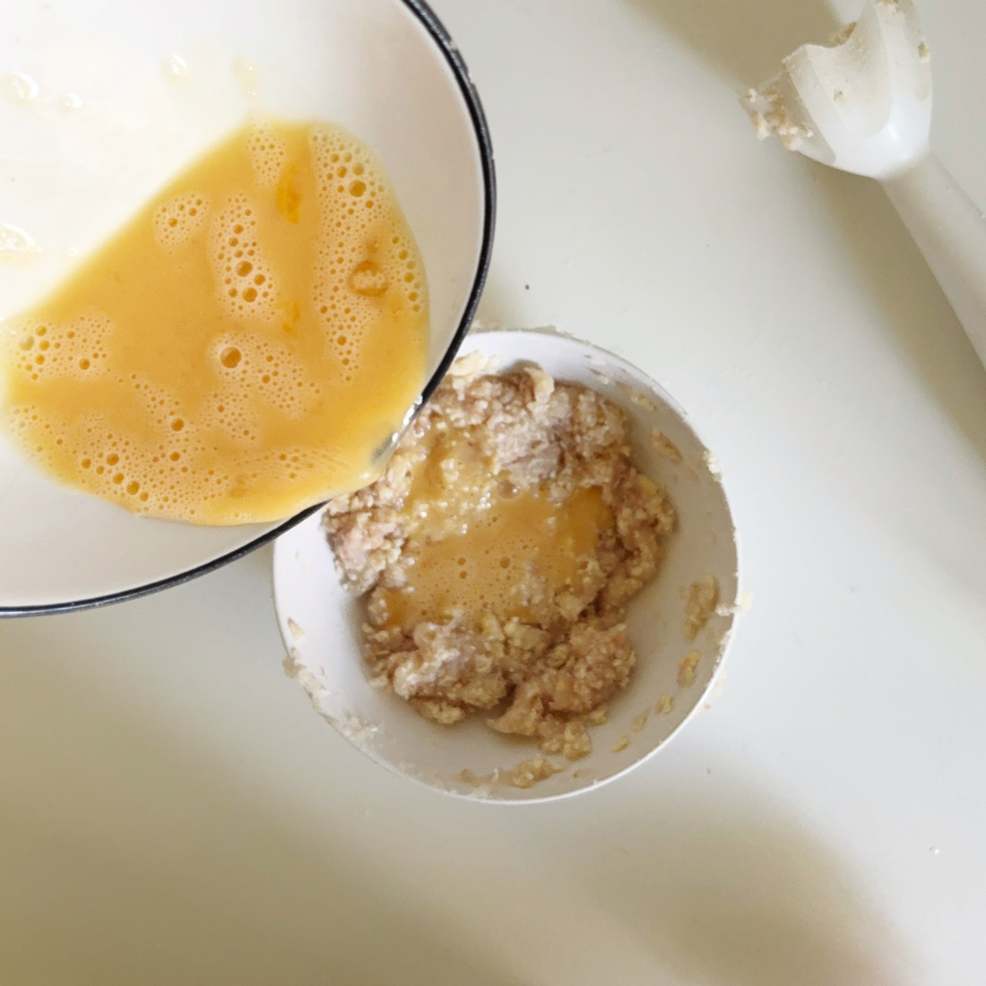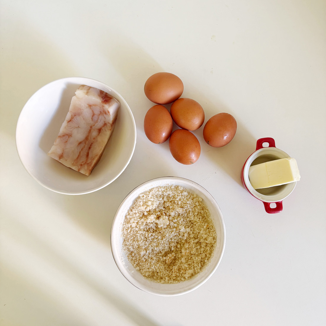 рыба 50 г, масло сливочное или топлёное 15 г, ⅛ сырого яйца (в фарш), яйцо крутое 1 шт.