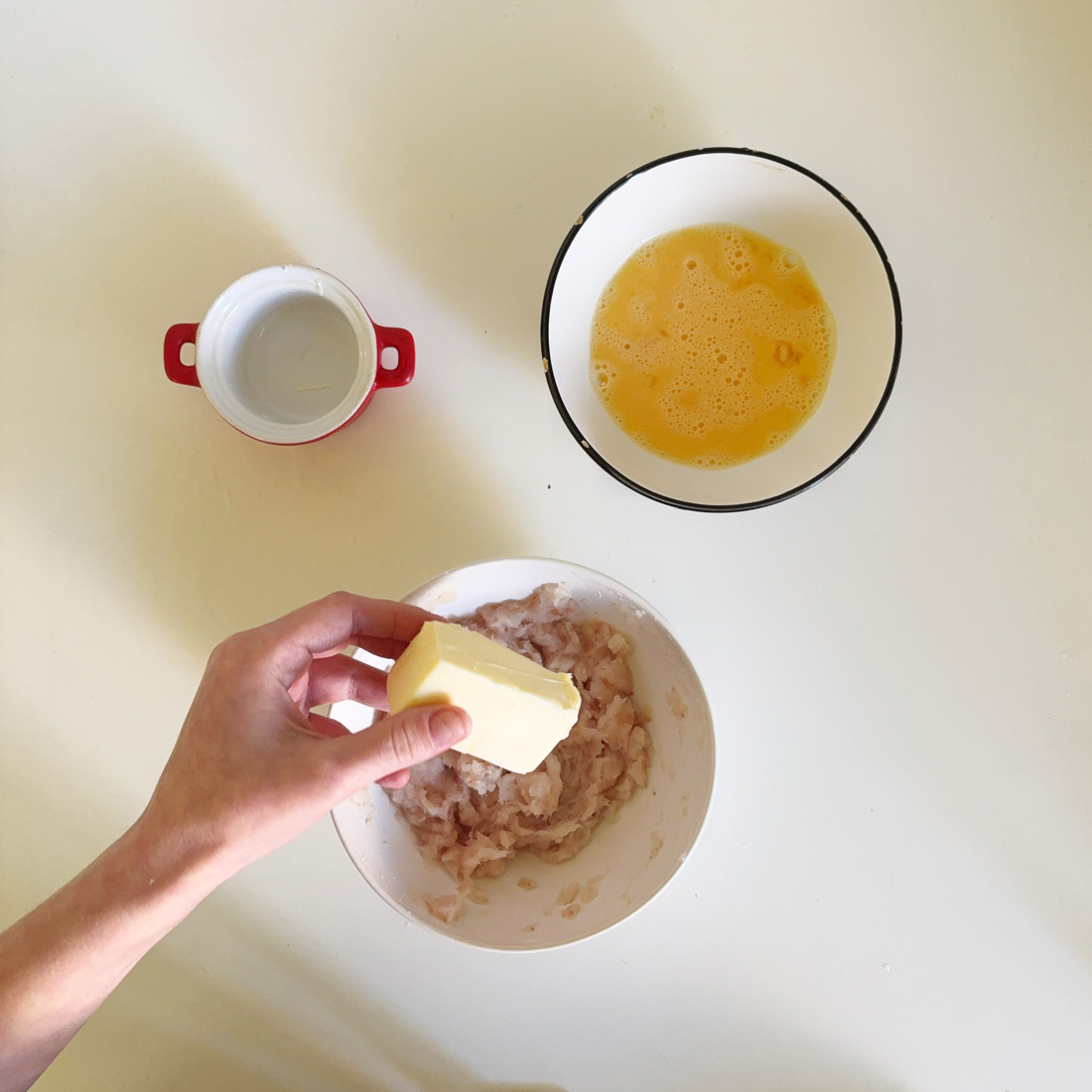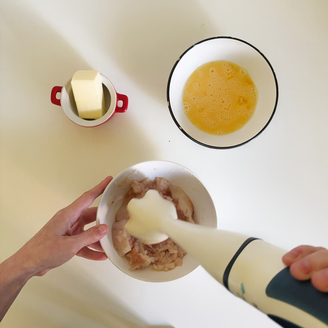 Филе рыбы пропустите через мясорубку, потом добавьте сливочное масло, яйцо, посолите, всё хорошенько взбейте.