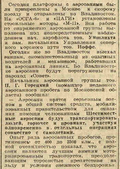 Лётчики Галышев и Доронин, вылетев из Хабаровска, в тот же день опустились в Николаевске-на-Амуре. Во Владивосток направлены два дирижабля «СССР В-2» и «СССР В-4».