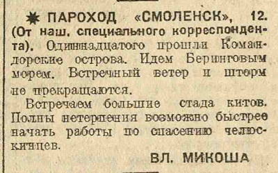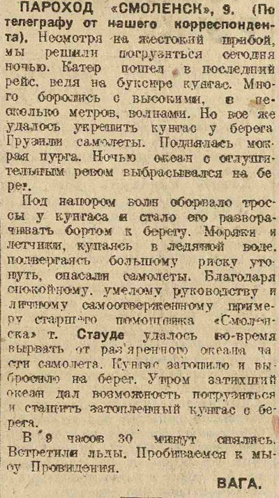 Летчик Слепнёв вылетел из Нома и благополучно опустился в Уэлене.