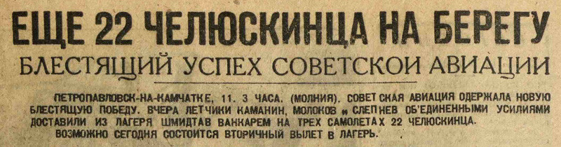 Пилот Каманин сделал один рейс из Ванкарема в лагерь и доставил оттуда 3 человек. Слепнёв вылетел из лагеря и привёз в Ванкарем 6 человек. Молоков сделал три удачных полёта в лагерь, доставив на берег 13 человек. За этот день было перевезено из лагеря на материк 22 человека.
