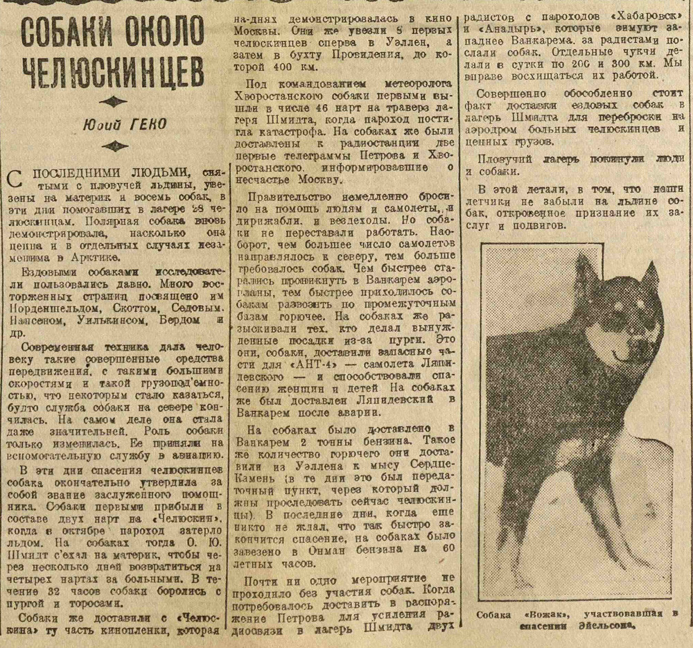 В Хабаровске создана чрезвычайная комиссия по оказанию помощи Челюскинцам. В этот день лётчик Ляпидевский совершил удачный перелёт из Уэлена в лагерь Шмидта, откуда он вывез на материк 10 женщин и двух детей.