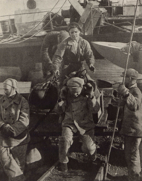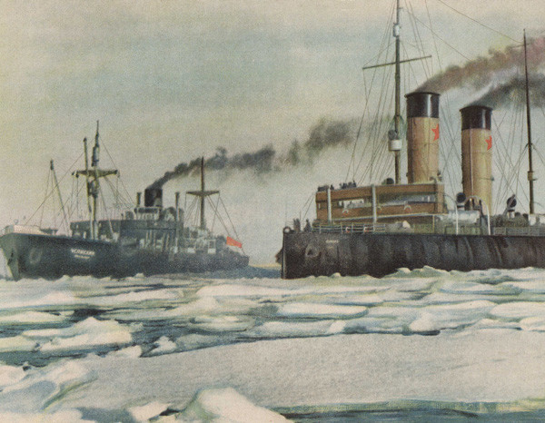 17 августа около 7 часов вечера к «Челюскину» подходит «Красин». Трое суток «Красин» берет с «Челюскина уголь», чтобы пароход приобрел нормальную осадку.