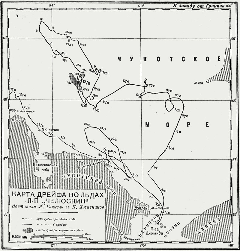 В 15 часов 30 минут «Челюскин» затонул в 155 милях от мыса Северного и в 144 милях от мыса Уэлен.