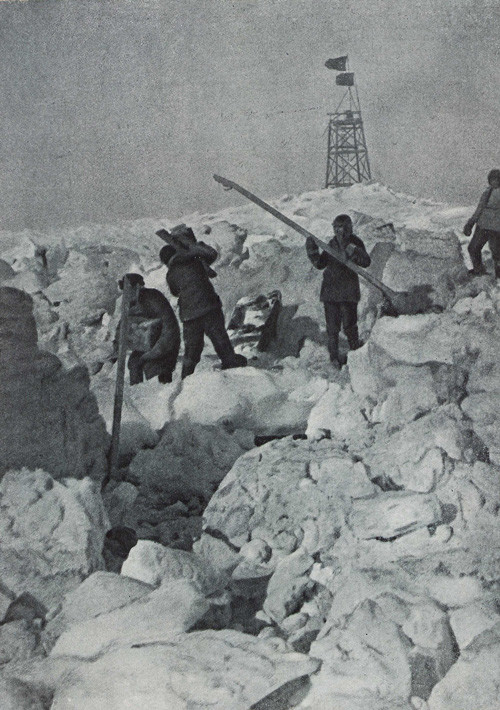 На «Челюскине» начались работы по подготовке к зимовке. На льду сделан первый аэродром. «Челюскин» вмёрз в огромную льдину, равную по своим размерам площади, занимаемой Москвой. Зимовка протекает благополучно.