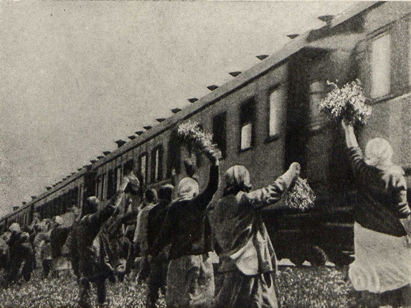 Челюскинцы прибыли во Владивосток, оттуда на специальном литерном поезде повышенной комфортности отправились через всю страну с торжественными встречами на вокзалах.